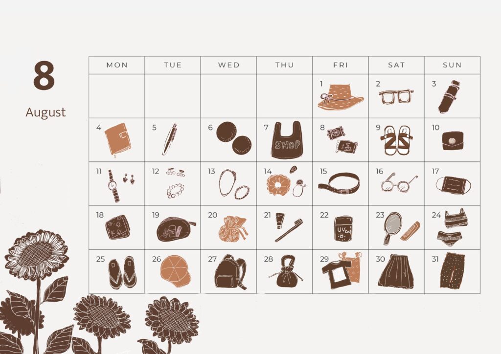 毎月お届けしている「日付カレンダーシート」は、その月ならではの風物詩や季節感を、イラストでやさしく描いたカレンダーです。